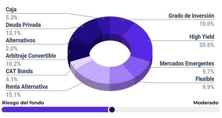 El Fondo Mutuo Blum Bonos Globales ganó 0.58% en diciembre, cerrando el año con un retorno de 7.69%, superando a su benchmark en todos los plazos relevantes. El fondo registró ganancias en 10 de los 12 meses del año. El peor retroceso mensual ocurrió en abril (-0.55%) como consecuencia del “Liberation Day”. El retorno del 2025 se explica por tres factores: 1) la compresión de spreads en mercados emergentes y crédito corporativo, donde destacaron fondos como BlueBay EM Unconstrained (+15.1% en el año), Man Dynamic Income (+11.4%); 2) las estrategias de “nicho” como arbitraje convertible (Lazard Rathmore +7.6%) y bonos “insurance linked” que aportaron estabilidad en momentos de alta volatilidad; y 3) el sólido desempeño de instrumentos de deuda privada como Ares Capital, Blackstone Secured Lending y Biopharma Credit.